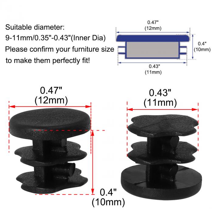 丸管インサートは、椅子、テーブル、机などの脚の端に金属カップを備えたタイプの丸管足に完全に適合します【商品説明】機能:1。