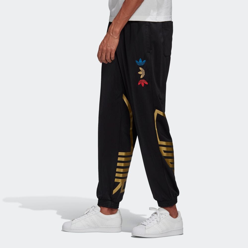 ドローコードで調節可能なウエストリサイクルポリエステル100%(トリコット)大胆なデザインのトラックパンツ前後にスリップインポケット伸縮性の裾商品番号:FS7325色:ブラック/プラチナメタリック生産国:Chinaモデル:IUC10対象:大人スポーツ:ライフスタイルコレクション:アディカラーベストフォー:ルームウェアSizeメンズ (JASPO規格)※商品の寸法ではなく、着用の目安となる数値です。