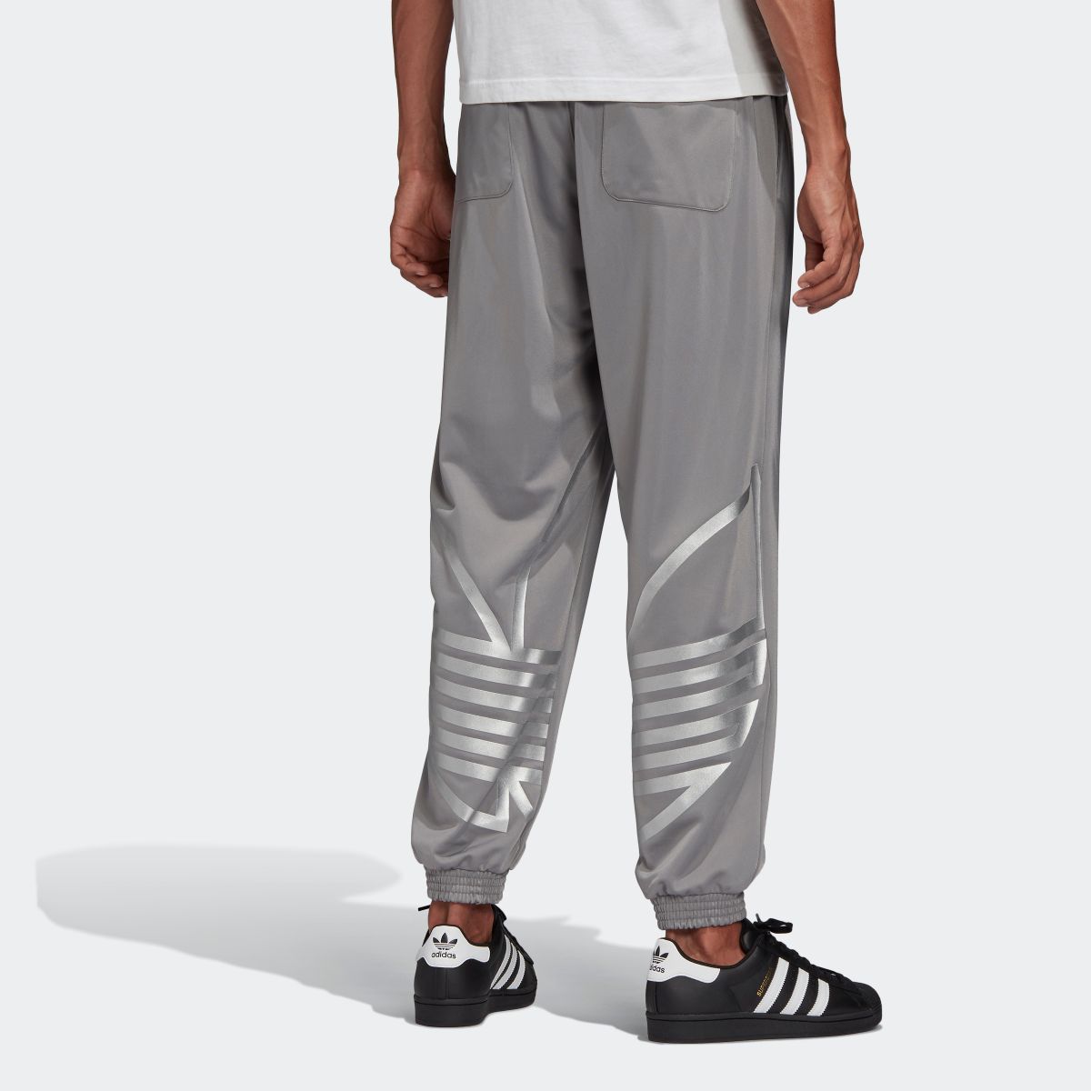 今季は、このロゴを脚の後ろに大きくあしらった、メタリック トラック パンツが登場。
