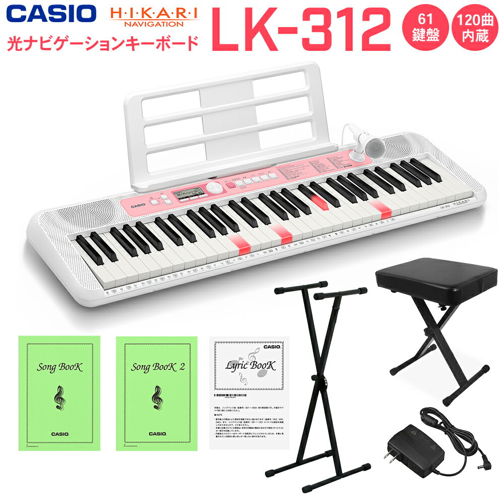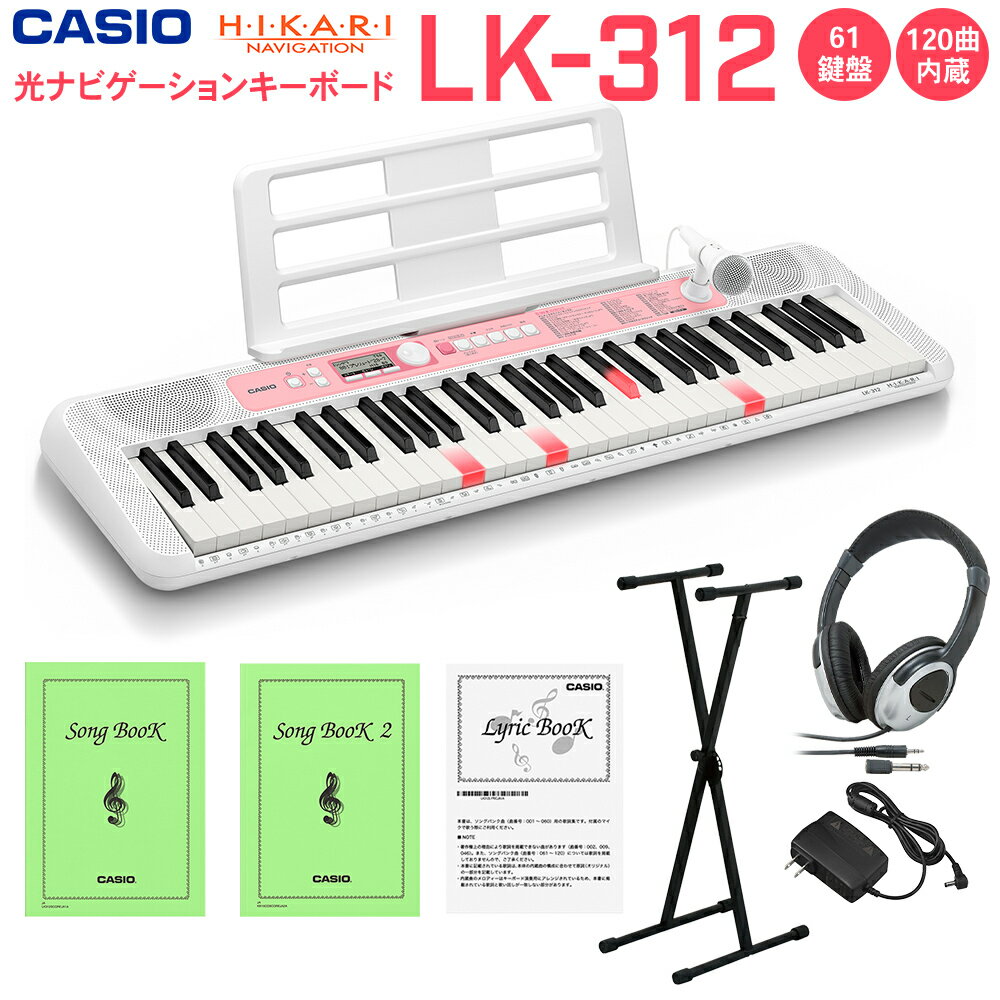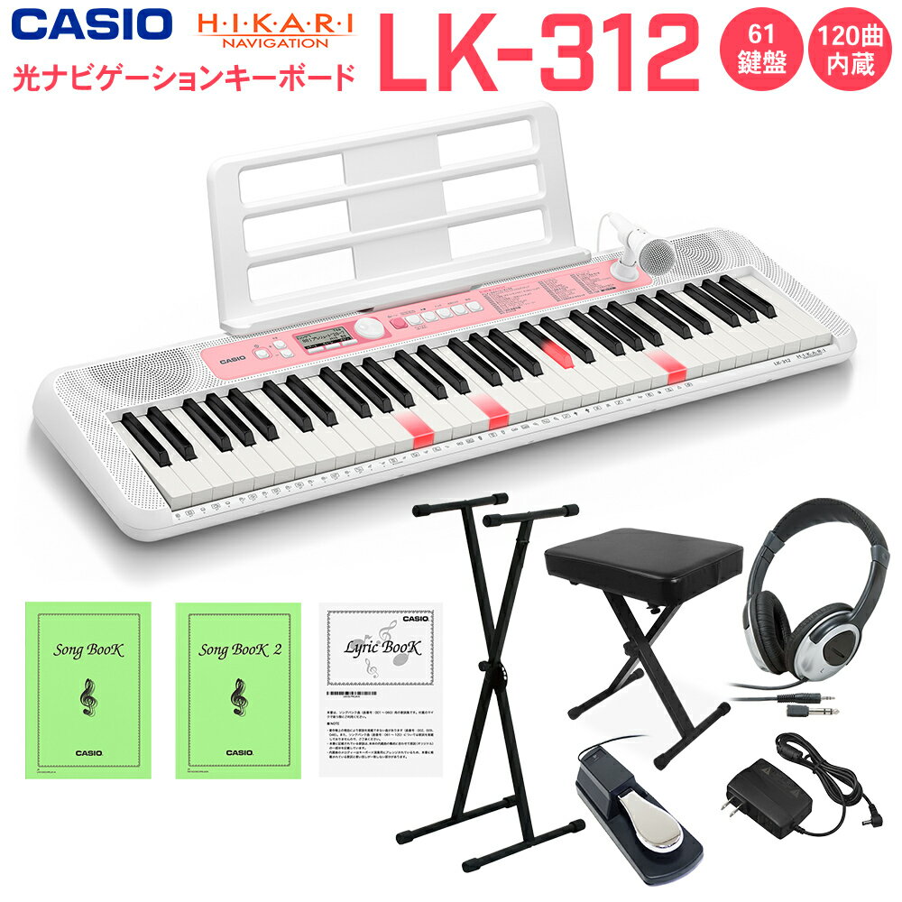 キーボード 電子ピアノ CASIO LK-312 光ナビゲーションキーボード 61鍵盤 黒スタンド・ヘッドホンセット 【カシオ LK312】 楽器